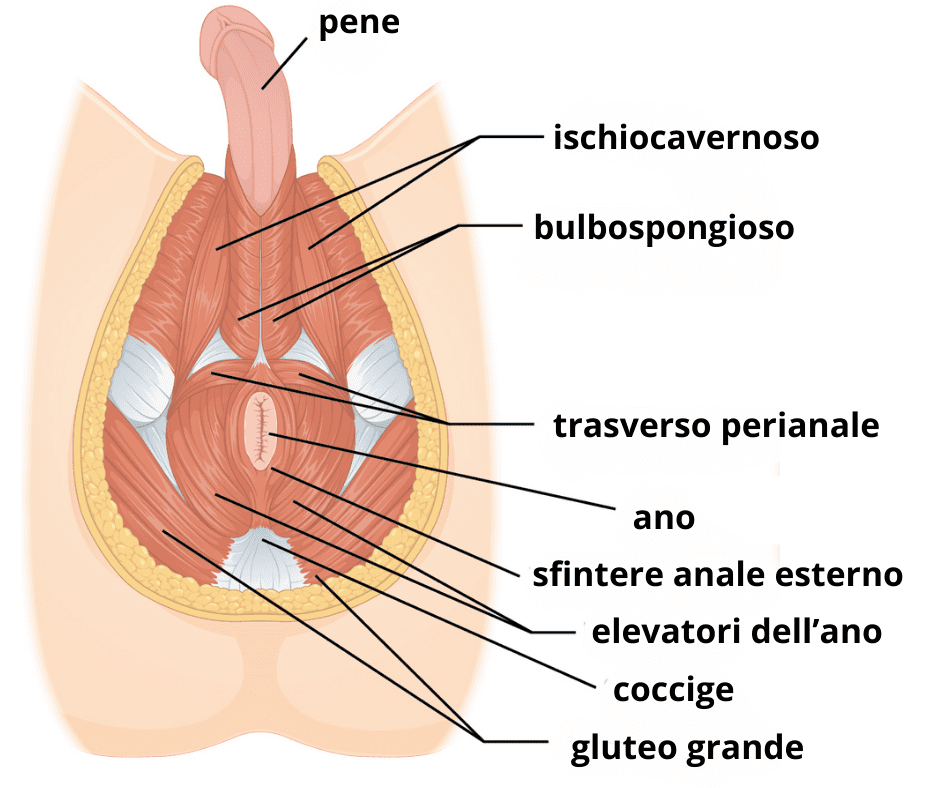 Il pavimento pelvico è composto da vari strati, ma il gruppo più importante è quello dei muscoli elevatori dell’ano, in particolare: