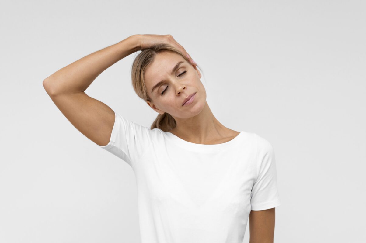 Rotazione del collo a dx e poi sx, in avanti e poi indietro. Piegare la testa a dx e poi sx, in avanti e poi indietro