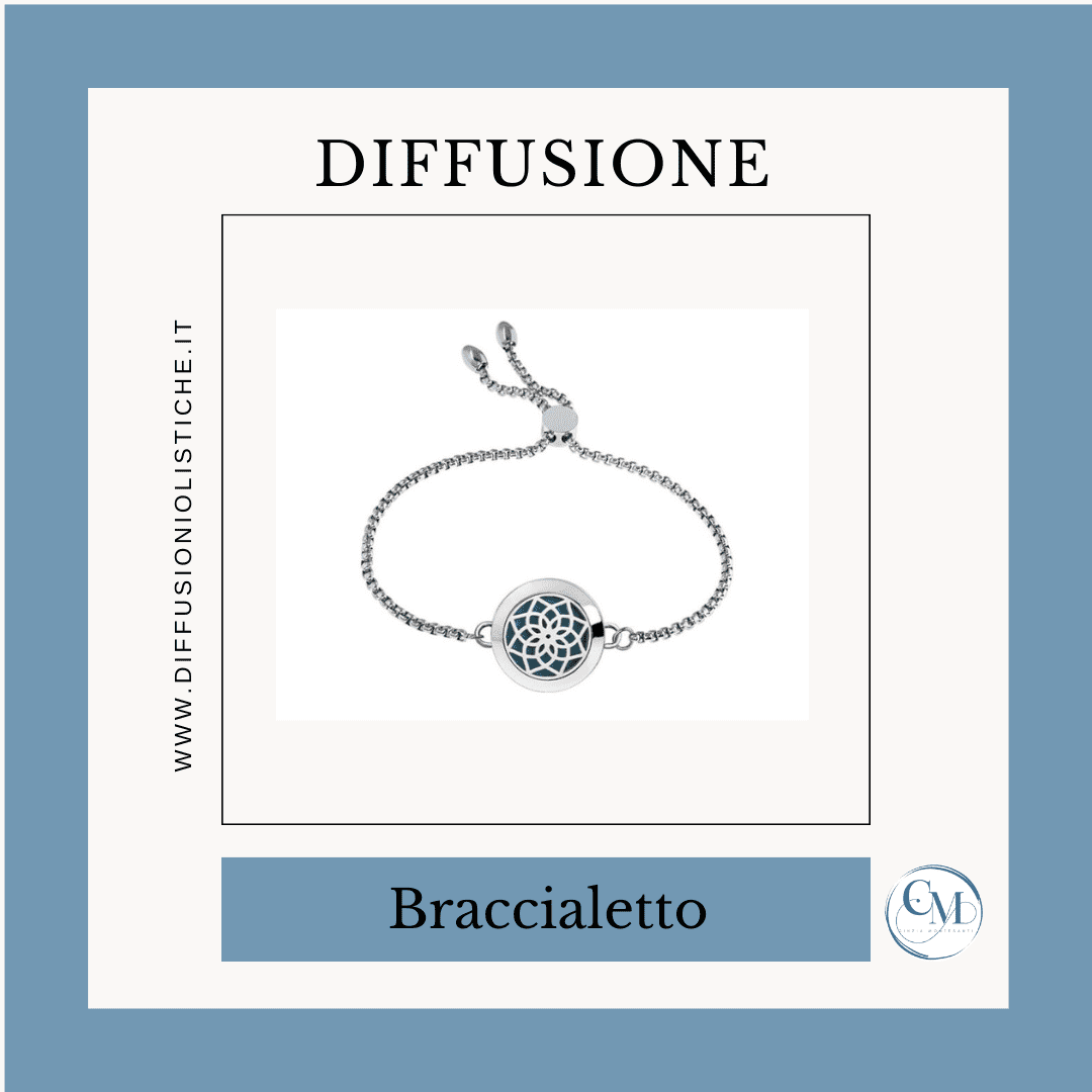 Braccialetto regolabile con ciondolo di diametro 2 cm, indicato per l’utilizzo in Aromaterapia.